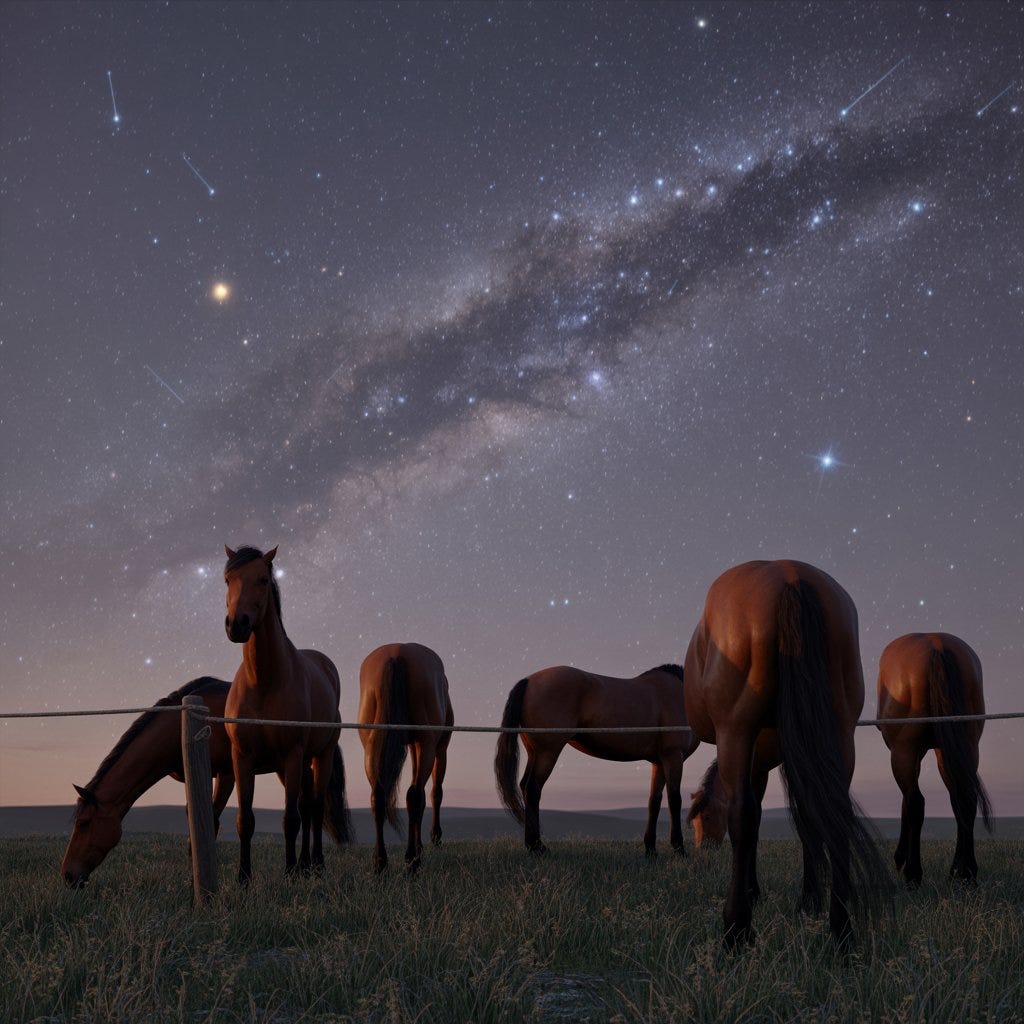 A shove on his elbows from the guards pushed Ricardo forward. He heard the horses before his eyes could adjust to the night. The moons were yet to rise; only starlight allowed him to see the picket fence at the southern edge of the camp.